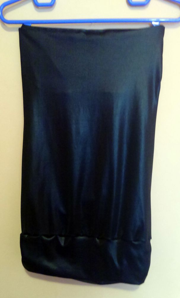 Fekete, fényes anyagú nyári ruhácska. S méretnek felel meg. Ára: 30 lej/ron