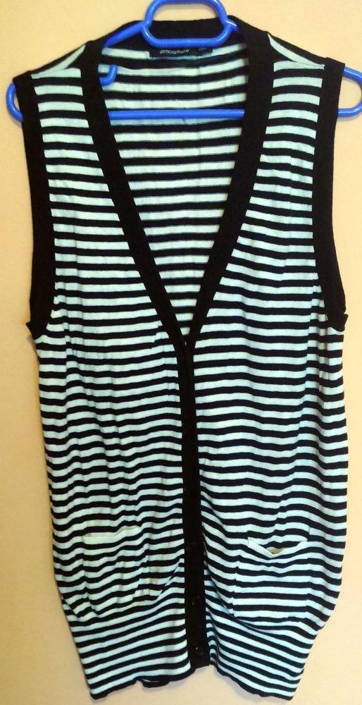 Csíkos, hosszú mellény. Univerzális méret. Ára: 10 lej/ron